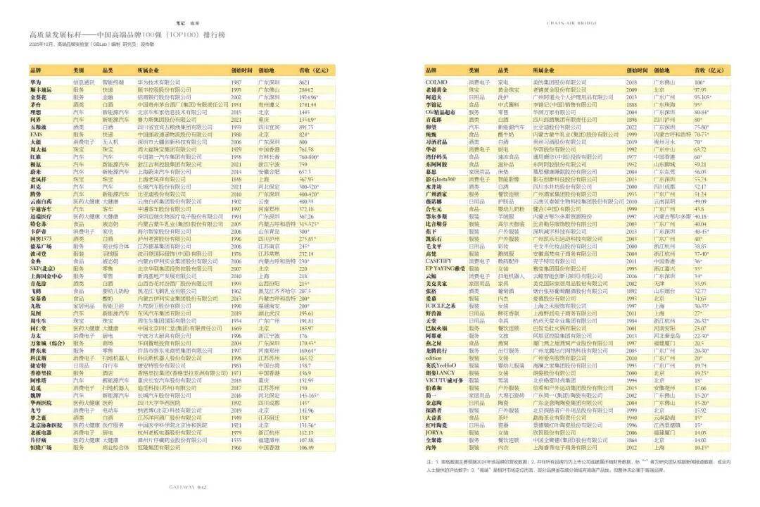 历程专家和业内人士保举,以及专家讨论组的几次筛选评估,克日,高端品牌尝试室(GBLab)历时三年功夫的讨论劳绩《高质料进展标杆——中邦高端品牌TOP100排行榜》正式揭橥,这是邦内首个以高端品牌为讨论对象的专业榜单(讨论告诉)。