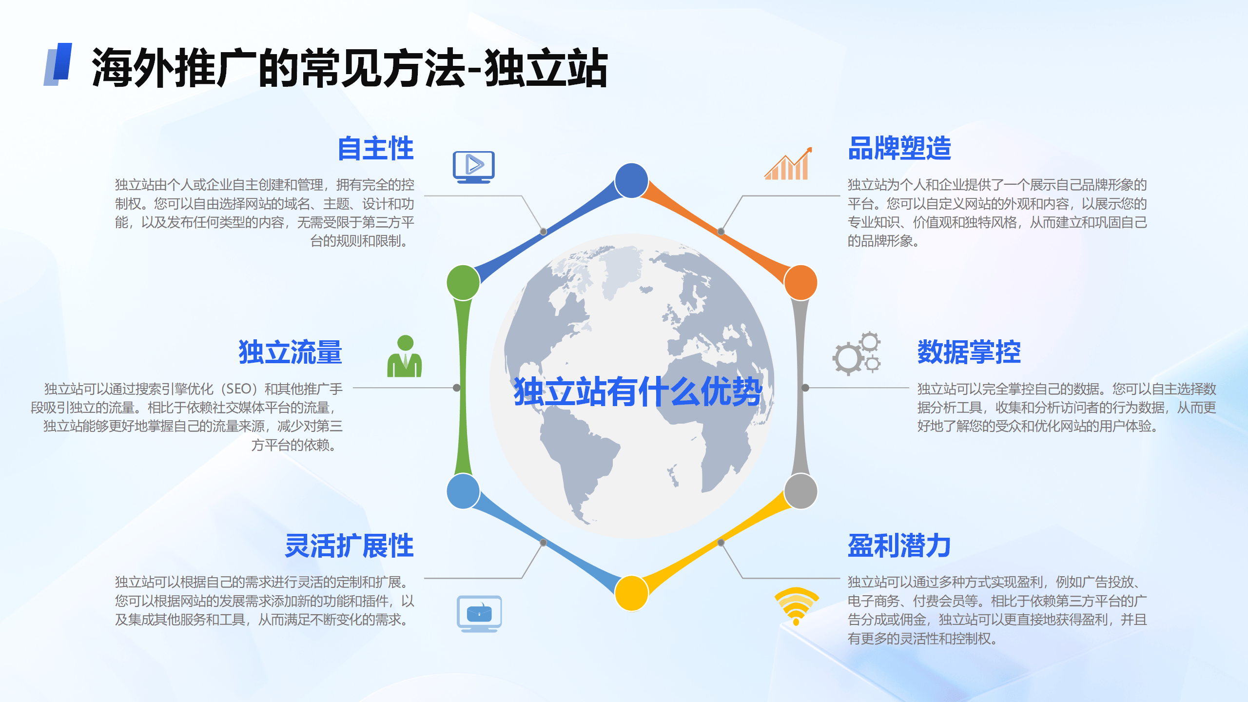 正在独立站修造方面,网前推助助企业设备独立自修的网站,具有全部的职掌权和自立性,可能定制化网站功效和策画。这种方法不只擢升了平和性和安稳性,还也许更好地餍足谷歌搜罗引擎的技巧央求,从而擢升搜罗排名。